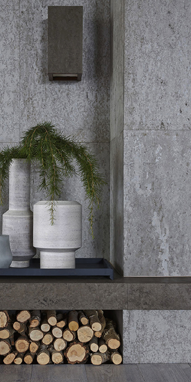每块墙板都带有其独特的肤色肌理,且富有斑点瑕疵和矿质沉淀,以完成原始混凝土独特的Concreate泥塑美学。